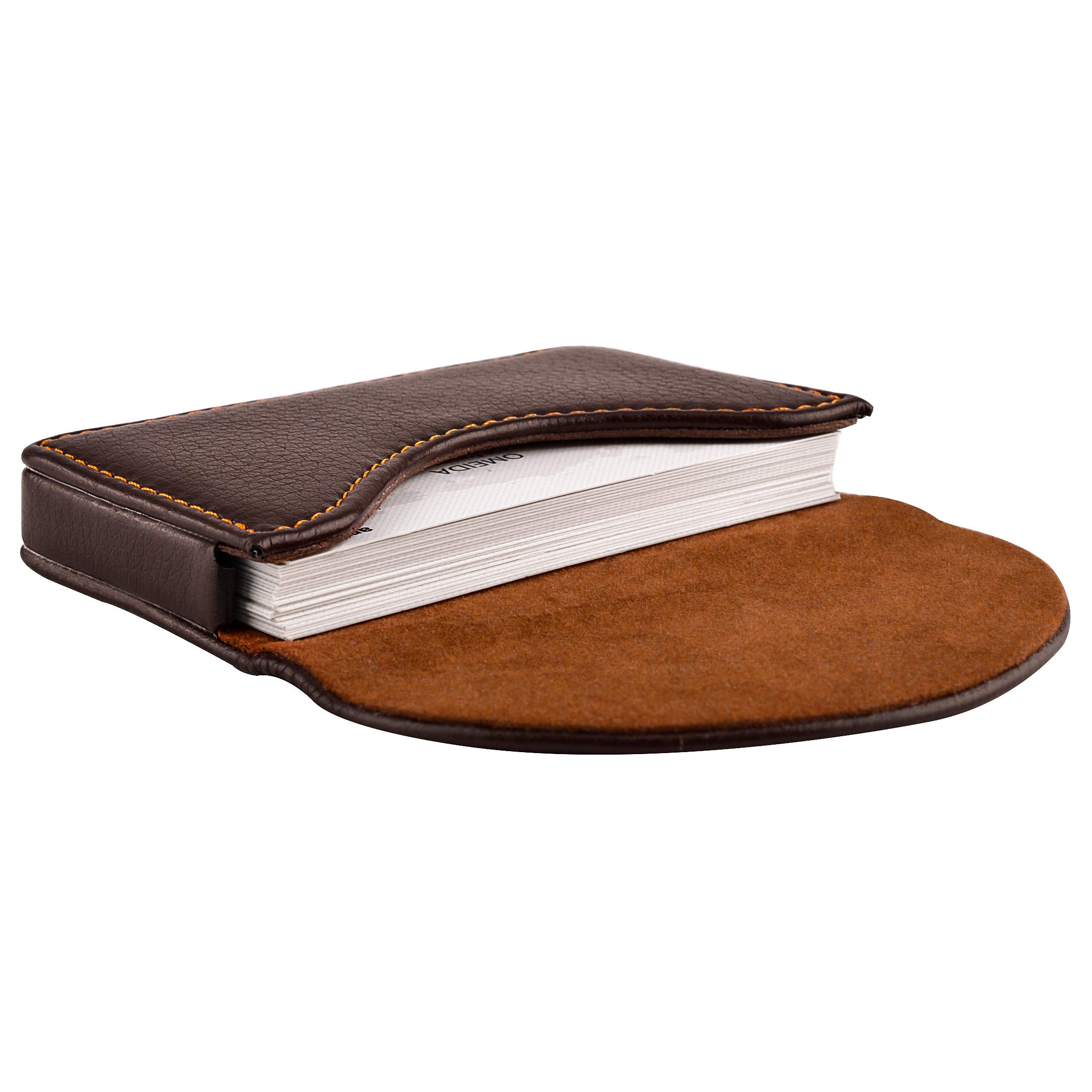 This flipping card holder solely made of great quality leather and can hold up to 25 business card, id or credit cards keeping it tidy and neat.